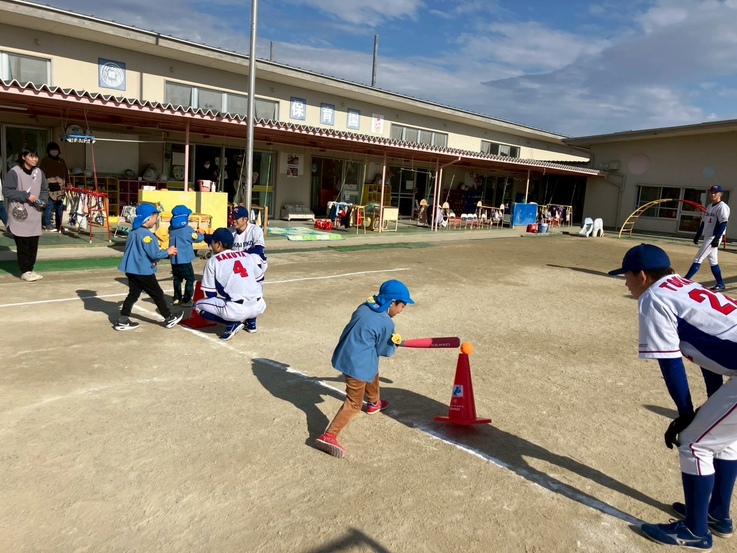 1月13日 火曜日 睦美保育園の子供たちを対象に「ティーボール教室」を実施しました。