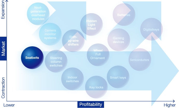 | 10 Years from now | Operating profit ratio of 7%: Make seatbelts one of Tokai Rika’s pillars of revenue! (Operating profit: 10 billion yen, Net sales: 140 billion yen) |