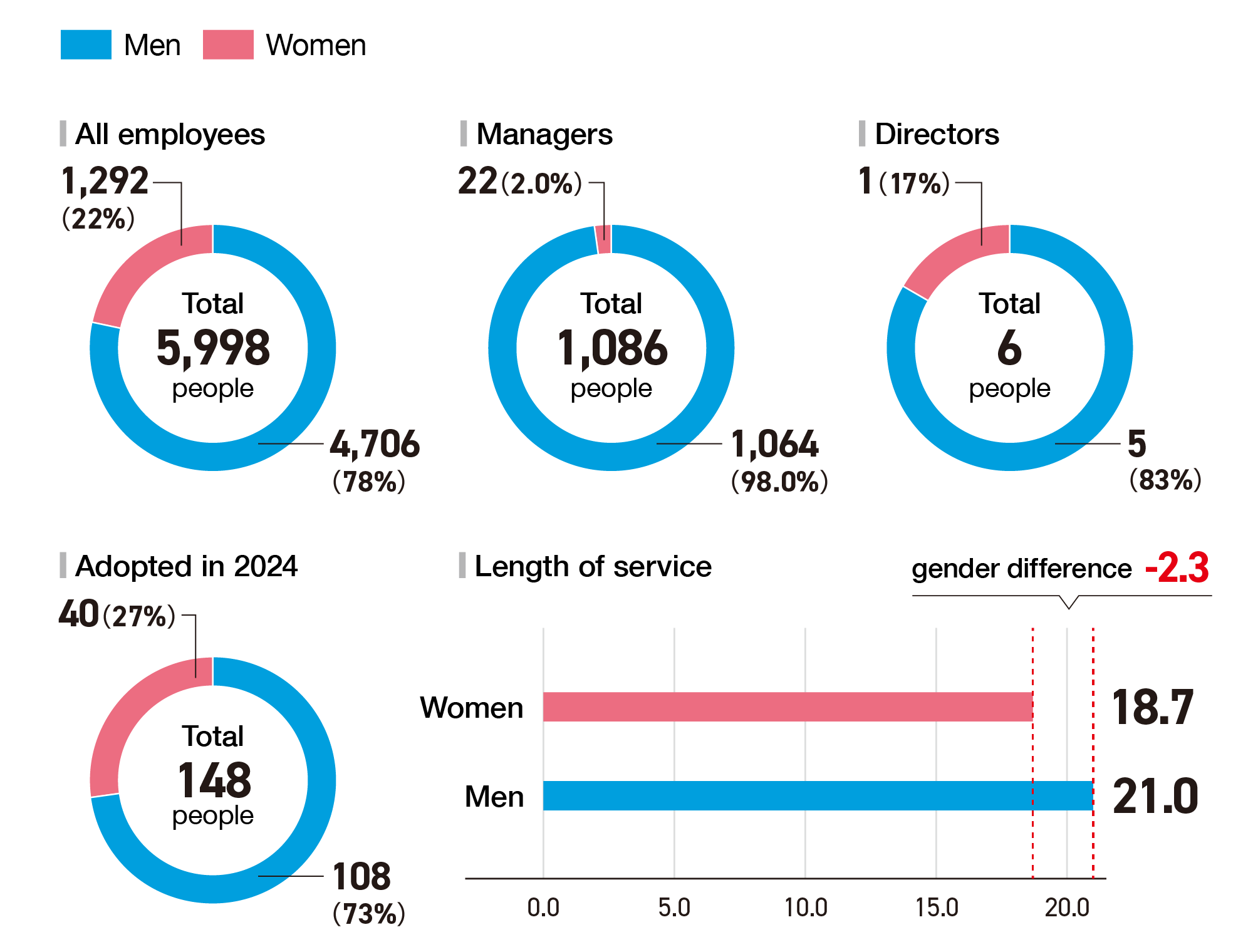 We view diversity and inclusion as one of the key pillars supporting our management foundation, and are working to foster systems and an organizational culture where diverse human resources can thrive.