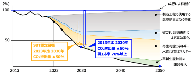 | SCOPE1+2(連結) | 2023年度 | ▲50% | ▲42%以上 |