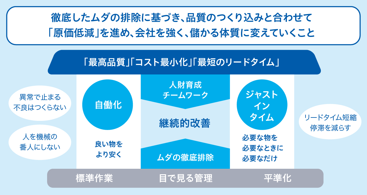 TPS(トヨタ生産方式)の思想を基盤に、原理原則に基づき自ら考え行動できる人財の育成を推進しています。従来から行っている工場での推進に加えて、2025年から事技系TPSを全社の活動に発展。今後も継続的な活動を通じて、企業体質の強化と東海理化イズムの継承をめざします。